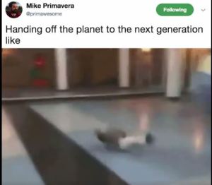 Handing off the Planet, Like–click here for video, from writer Mike Primavera at twitter.