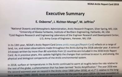 Recently released by NOAA, the Arctic Report Card 2018 details profound changes underway in the Arctic from rapid temperature increases.
