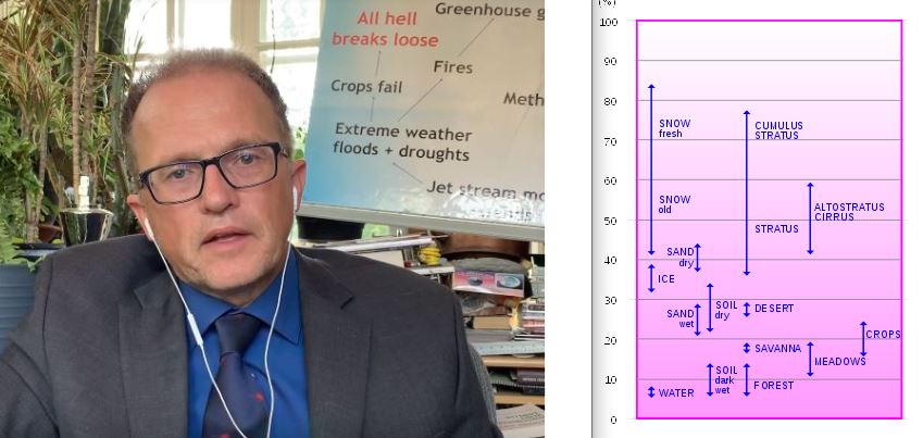 I continue chatting about Albedo (reflectance) and how the Arctic is rapidly darkening. By assumption, when people talk about albedo it is for: