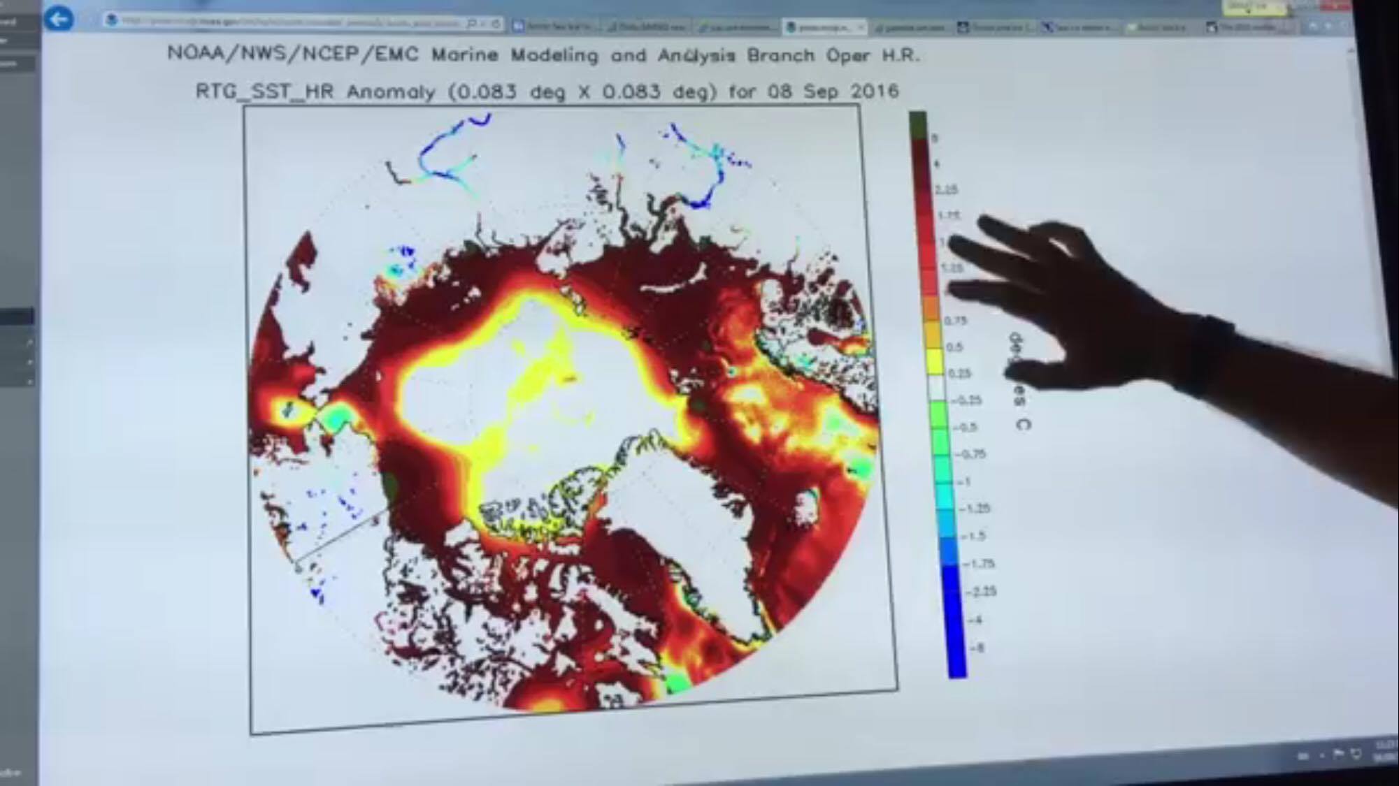 I think that very soon, we will lose the Arctic sea ice. We’ll have a “blue ocean event” (what I call it) and then the global extreme weather events that we see now, which are a manifestation of the latitudinal warming gradient, the greatly warming Arctic, will increase in severity, frequency and duration. They’re going to hit people’s wallets and security, and entire lives — well, they can hit the food supply for one thing, but it will also have a big impact on — I mean, it’s already having a big impact on the bottom line, the dollar, with the damage to infrastructure, flooding of cities, torrential rain events, the weather weirding and whiplashing, around weather variability and statistics in general.