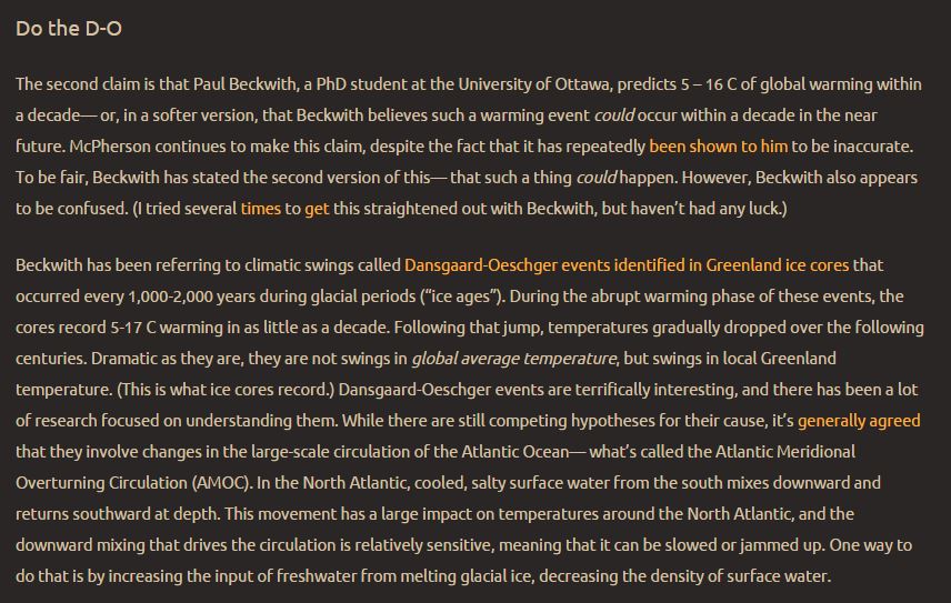 Who I am: ‘Paul Beckwith is a full-time PhD student researching abrupt climate change in the Geography Department at the University of Ottawa in Canada. He is also a part-time professor teaching climatology/meteorology. He is an engineer (B.Eng. Engineering Physics) and a physicist (M.Sc. Laser Physics)’.